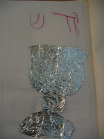The first page contains a foil cup, to illustrate the kiddush (sanctification) on the wine: